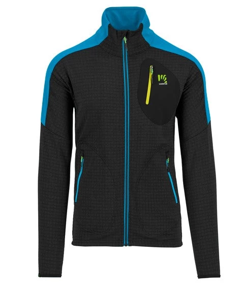 De KARPOS, pour homme, le chandail PUEZ FLEECE full zip est la seconde couche thermique hautement respirante à utiliser dans vos activités aérobiques en hiver. Parfait sous l’un de nos shells ou vestes thermiques, pour le ski alpin, de randonnée et les treks courts. Il est fabriqué avec deux types de tissus dont la structure interne améliore la respirabilité et la chaleur.